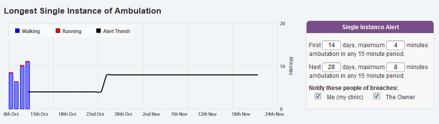 The longest single instance plot is a simple bar graph showing the 15 minute period of each day that contained the highest levels of walking and running.