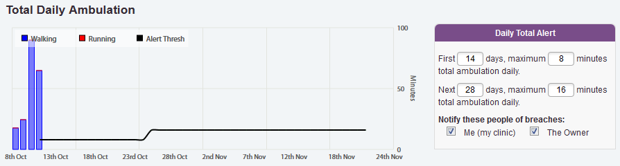 The Total Daily Activity plot is a simple bar graph showing the total level of walking